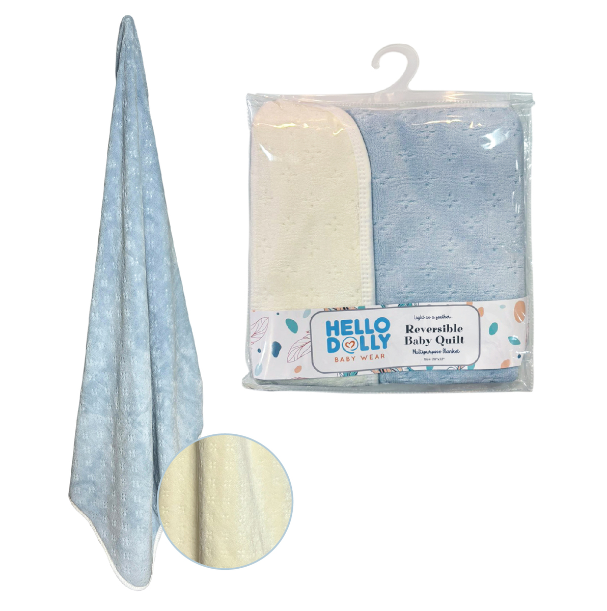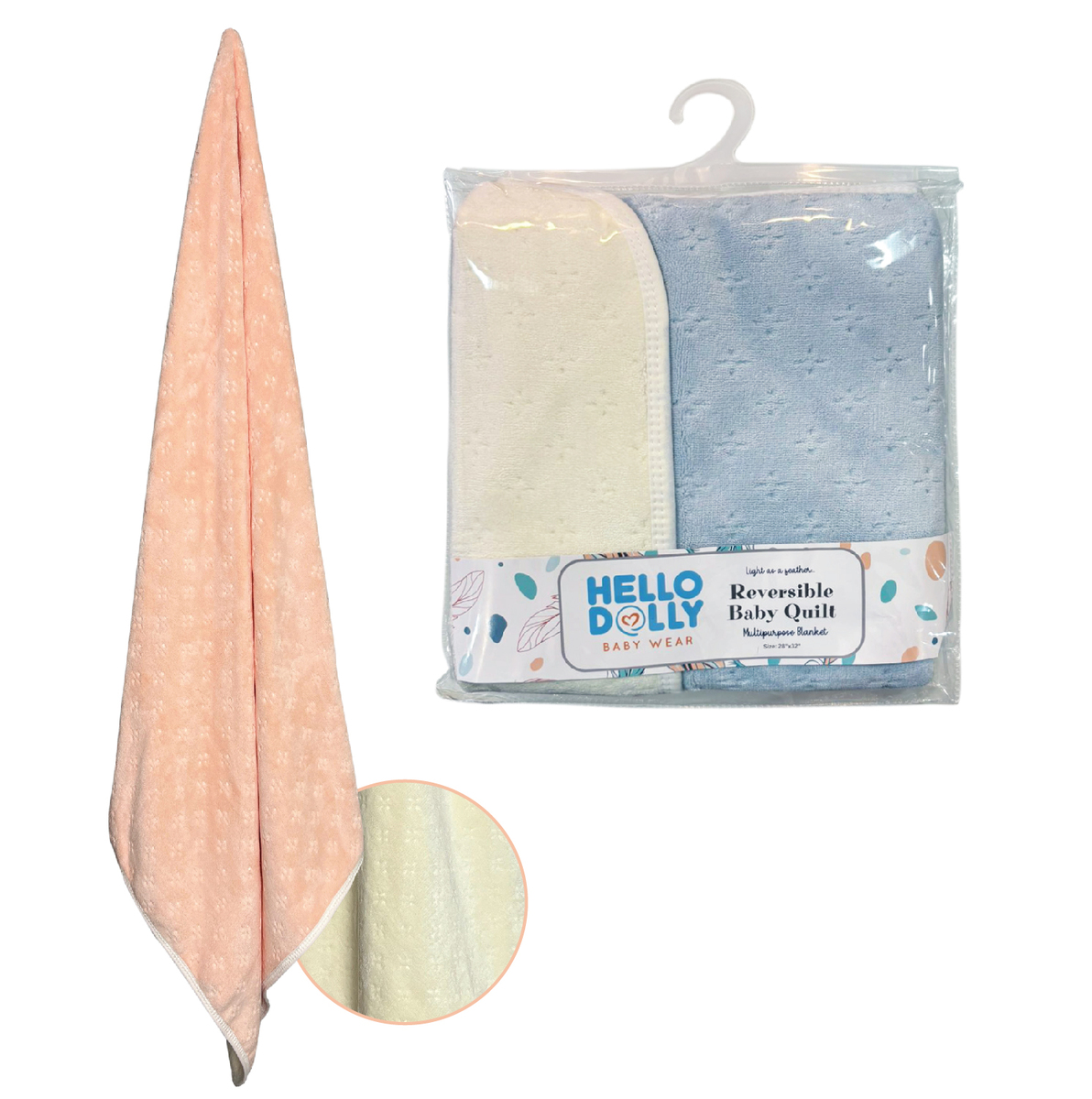 HELLO DOLLY EMBROIDERED PLUSH BLANKET & RVERSIBLE QUILT